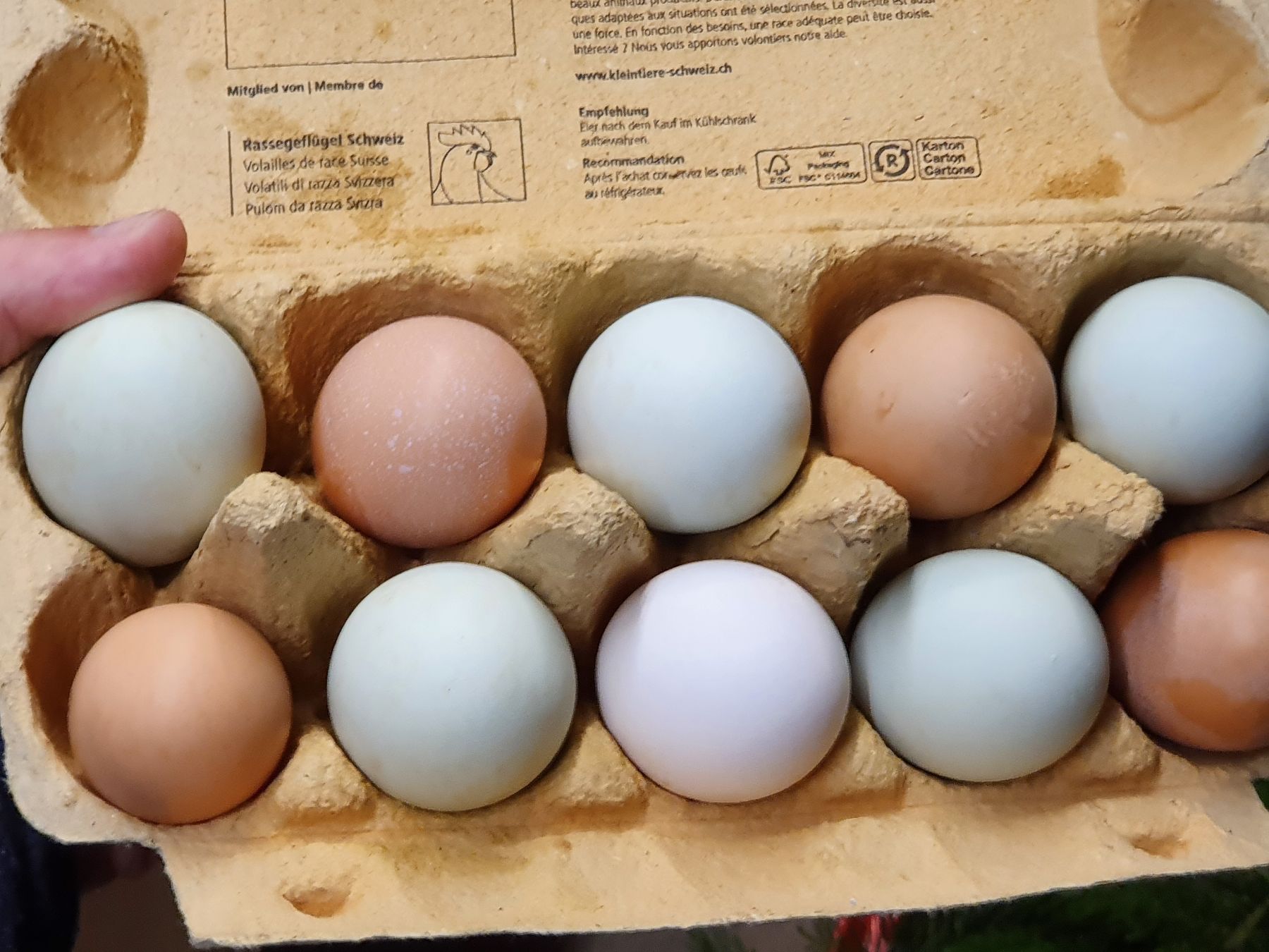 Auf der Straussenfarm leben diverse Hühnerrassen. Wir produzieren natürlich bunte Eier mit alten traditionellen Hühnerrassen (keine Hybriden). Die Hühner leben in Freilandhaltung und können nach Herzenslust picken und scharren was Sie möchten.
